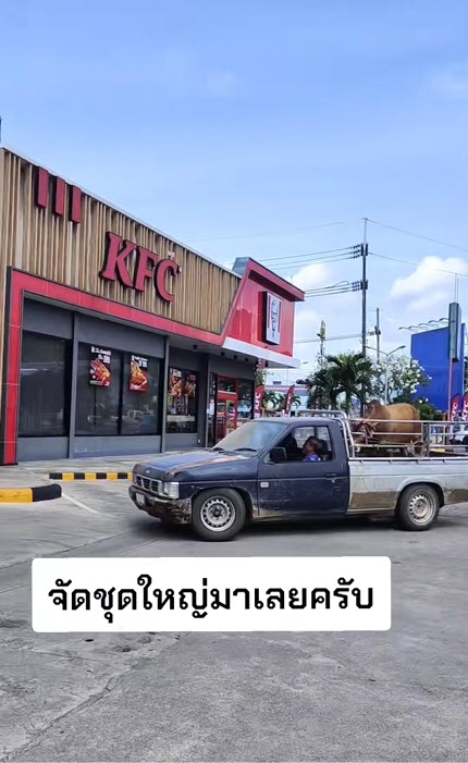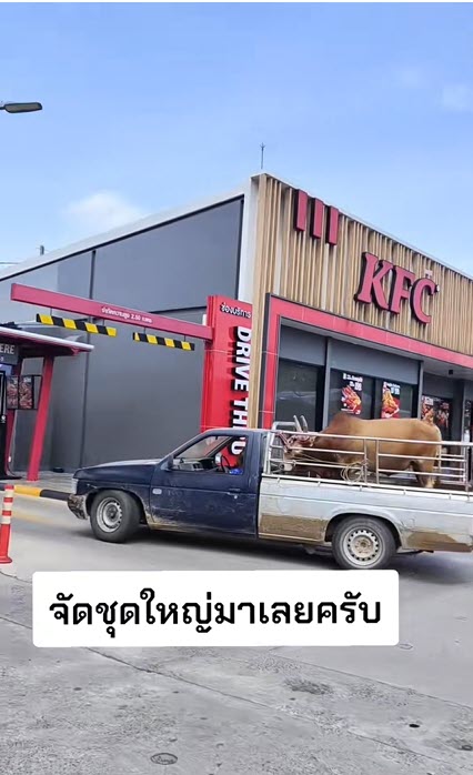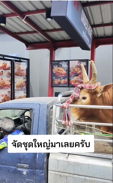 เป็นอีกหนึ่งคลิปที่ถูกพูดถึงและแชร์กันอย่างมากมาย เมื่อบัญชีผู้ใช้ TikTok ที่ใช้ชื่อ @muangkasad.pt ได้ออกมาโพสต์คลิปของรถขนวัว ที่วิ่งเข้าไปซื้อ KFC ในร้าน drive thru พร้อมแคปชั่นว่า “ได้กินสักที จัดชุดใหญ่มาเลยครับ“