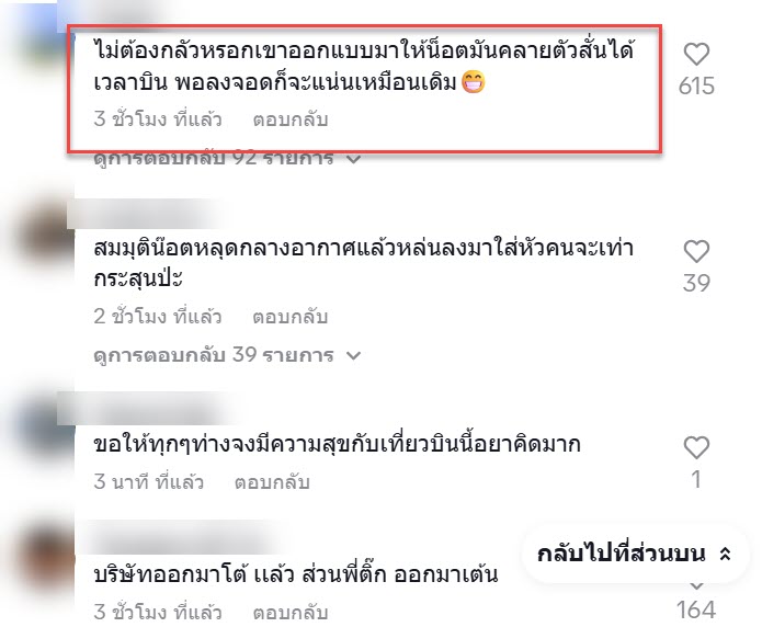 ซึ่งจากในคลิปนี้ก็มีหลายคนเข้ามาแสดงความคิดเห็นกันอย่างมากมาย ซึ่งจากคลิปนี้ผู้โดยสารที่ถ่ายคลิปมาก็คงลุ้นอย่างมาก เพราะน๊อตแต่ละตัวทำเอาใจเสียแบบสุดๆ