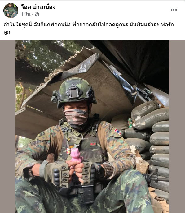ส่งกำลังใจ ทหารแนวหน้าโพสต์ ถ้าไม่ใส่ชุดนี้ ฉันก็แค่พ่อคนนึง ที่อยากกลับไปกอดลูก