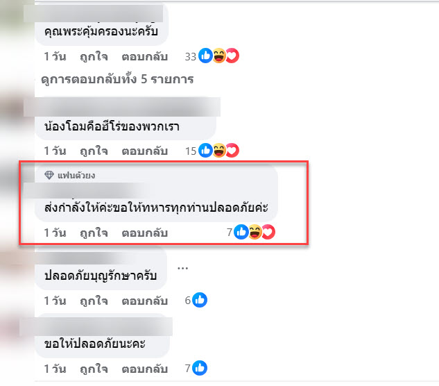 “ส่งกำลังใจนะคะ ขอให้ทหารไทยปลอดภัยทุกคน”