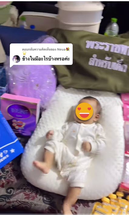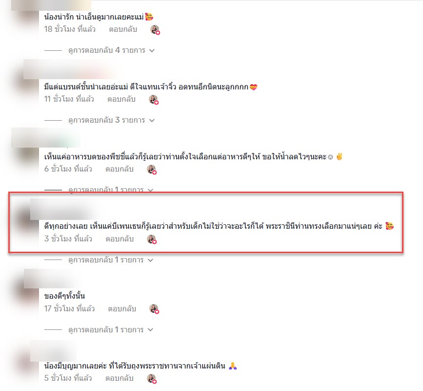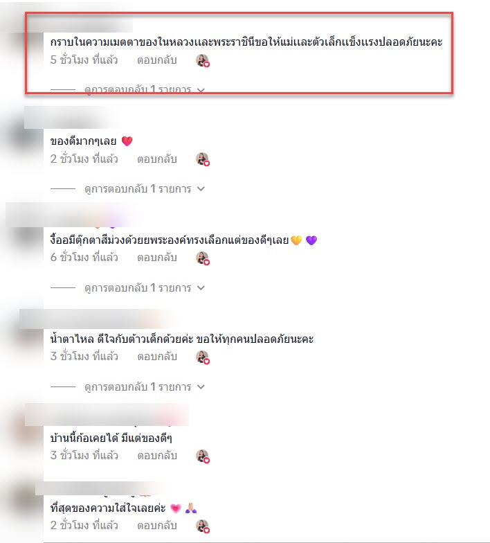 “กราบในความเมตตาของในหลวงเเละพระราชินีขอให้แม่เเละตัวเล็กเเข็งเเรงปลอดภัยนะคะ”
