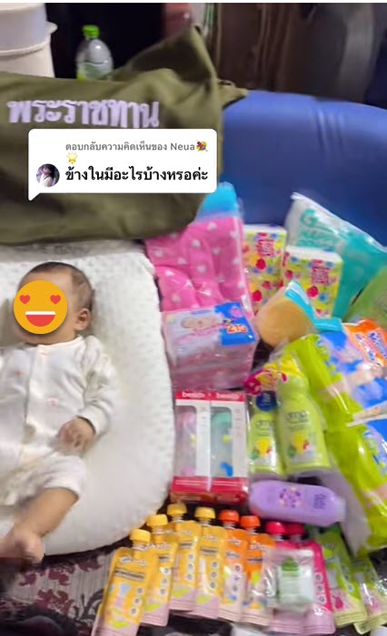 เป็นอีกหนึ่งคลิปที่ถูกพูดถึงอย่างมากในตอนนี้ เมื่อบัญชีผู้ใช้ TikTok ที่ใช้ชื่อ @krujunestory ได้ออกมาโพสต์คลิปสิ่งของยังชีพในถุงพระราชทาน ซึ่งเป็นของใช้จำเป็นสำหรับเด็กอ่อน
