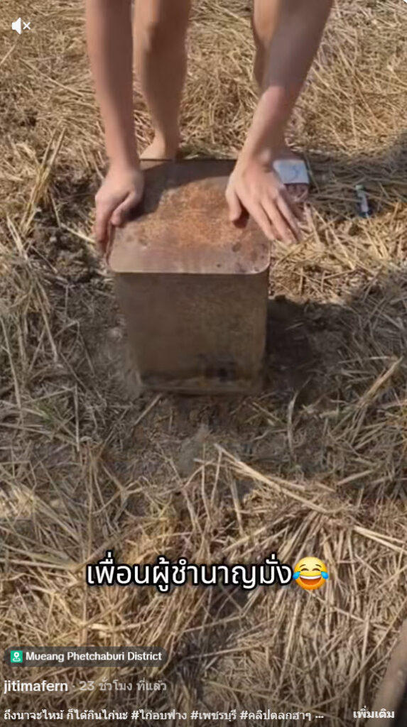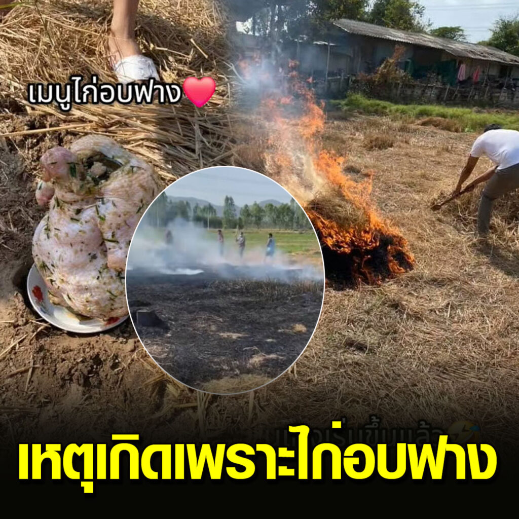 ในคลิปเผยให้เห็นว่า ระหว่างการอบไก่เกิดความผิดพลาด ไฟได้ลุกไหม้ตอฟางข้าวในนา ทำให้ต้องรีบช่วยกันดับไฟอย่างโกลาหล จนเกือบต้องเรียกกู้ภัย โชคดีที่สามารถควบคุมสถานการณ์ไว้ได้ทัน และผลลัพธ์สุดท้าย ไก่อบฟางก็ออกมาสุกสวย น่ารับประทาน