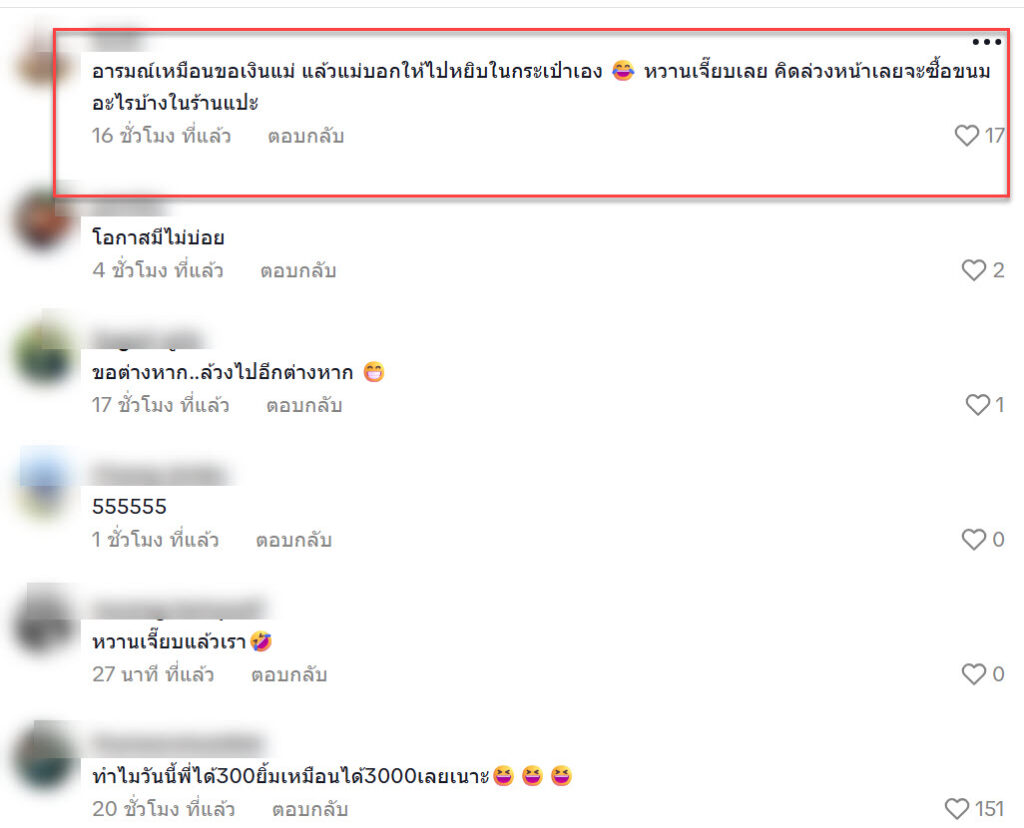 “อารมณ์เหมือนขอเงินแม่ แล้วแม่บอกให้ไปหยิบในกระเป๋าเอง หวานเจี๊ยบเลย คิดล่วงหน้าเลยจะซื้อขนมอะไรบ้างในร้านแปะ”