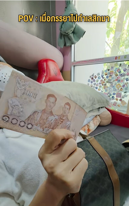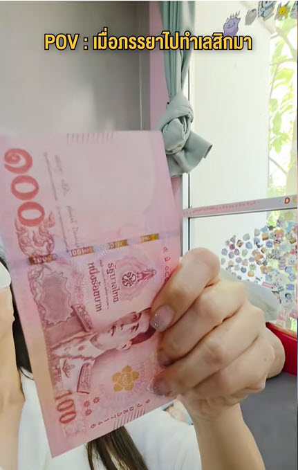ภรรยาควักเงินออกมาให้แล้วถามว่าอันนี้แบงก์อะไร