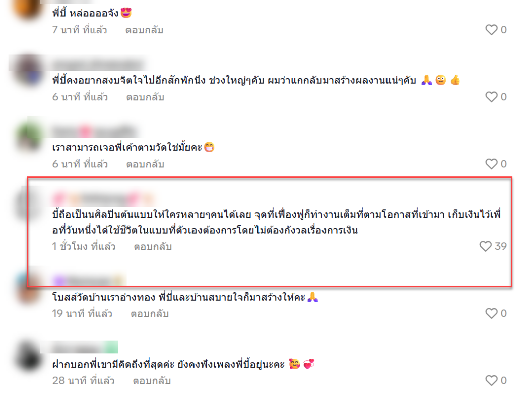 “บี้ถือเป็นนศิลปินต้นแบบให้ใครหลายๆคนได้เลย จุดที่เฟื่องฟูก็ทำงานเต็มที่ตามโอกาสที่เข้ามา เก็บเงินไว้เพื่อที่วันหนึ่งได้ใช้ชีวิตในแบบที่ตัวเองต้องการโดยไม่ต้องกังวลเรื่องการเงิน”