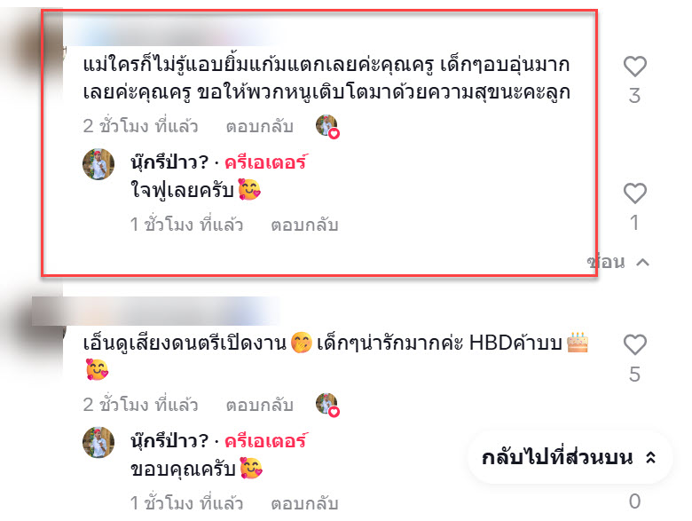 “น่ารักจังเลยค่ะ HBD ย้อนหลังนะคะคุณครู”
