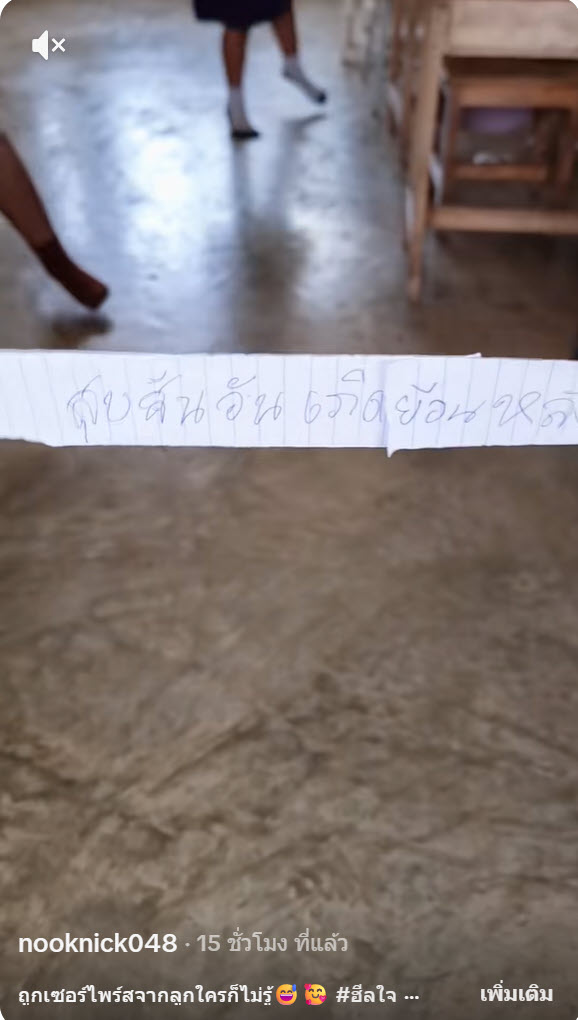 โดยจากในคลิปนั้นได้เผยให้เห็นว่า เด็กๆได้ทำารเซอร์ไพร์สครู โดยการเอากระดาษมาทำที่กั้นประตูให้คุณครูตัดเหมือนตัดริบบิ้น และมีเขียนข้อความไว้ว่า สุขสันต์วันเกิดย้อนหลัง