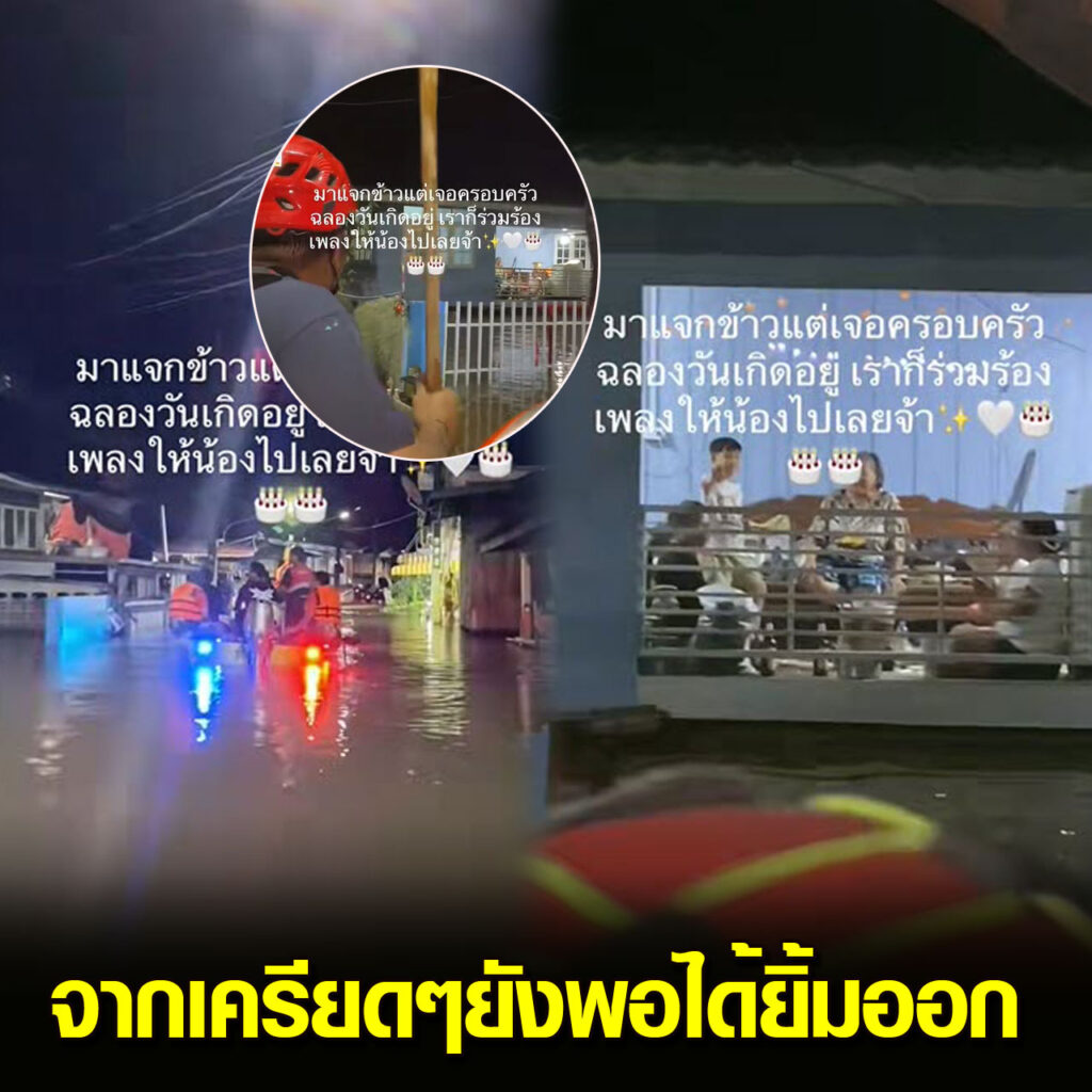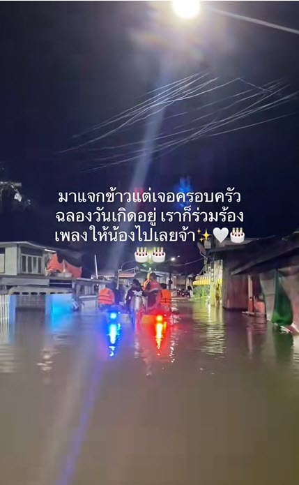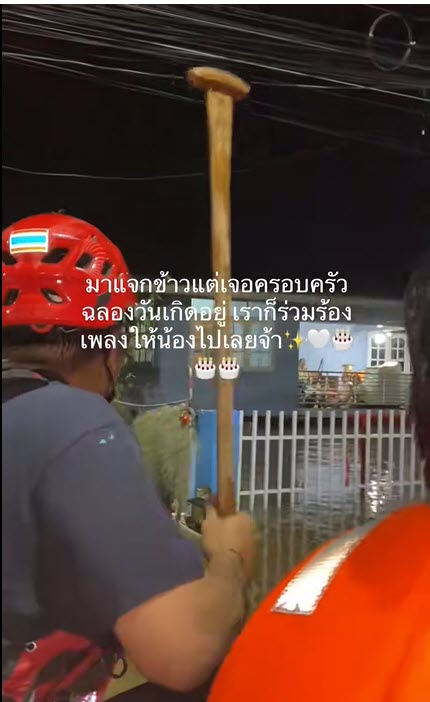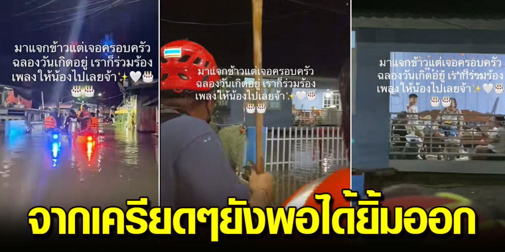 กู้ภัยเผยคลิปเรียกรอยยิ้ม ในระหว่างแจกข้าวผู้ประสบภัย ฉลองวันเกิดท่ามกลางน้ำท่วม