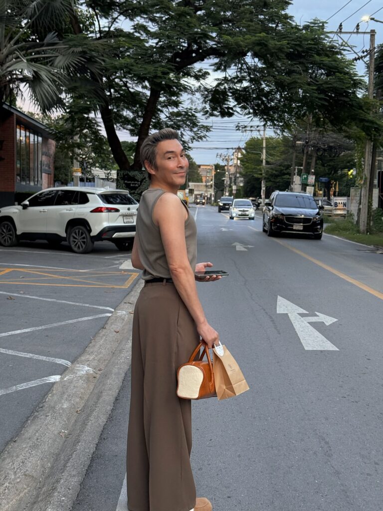 แล้วถือกระเป๋าเดินทิ้งสะโพกจนนึกว่าสาวสวยที่ไหน