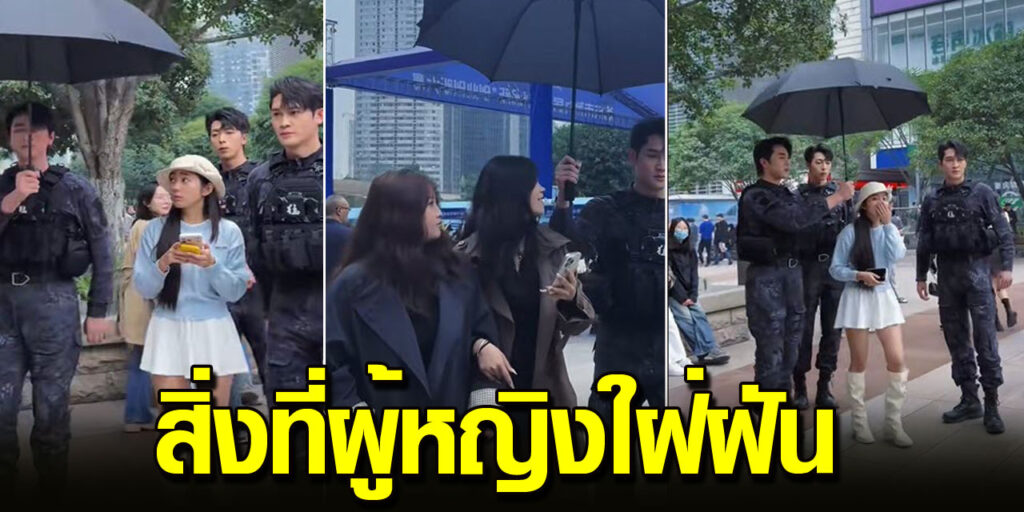 เป็นคลิปที่ดูแล้วเป็นคอนเทนต์ในฝฝันของสาวๆ ที่อยากได้คนมาดูแลเหมือนในซีรีส์หรือละคร โดยล่าสุดบัญชีผู้ใช้ TikTok ที่ใช้ชื่อ @junhie3 ได้ออกมาโพสต์คลิปที่มีหนุ่มหล่อในเครื่องแบบ เดินเข้ามากางร่มให้สาวๆที่เดินอยู่ ให้ฟิลเหมือนเป็นบอดี้การ์ดส่วนตัว