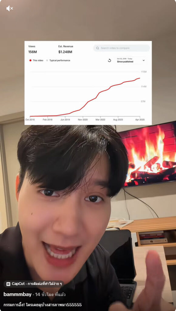 หลังคลิปดังกล่าวถูกเผยแพร่ออกไป ก็กลายเป็นที่พูดถึงในโลกโซเชียลอย่างมาก หลายคนต่างทึ่งกับพลังของแพลตฟอร์มยูทูบ ที่แม้จะเป็นเพียงคลิปธรรมดาอย่างกองไฟยาวกว่า 10 ชั่วโมง ไม่มีการตัดต่อ ไม่มีพิธีกร หรือเนื้อหาหวือหวา แต่กลับสามารถสร้างรายได้ระดับหลักสิบล้านบาทได้