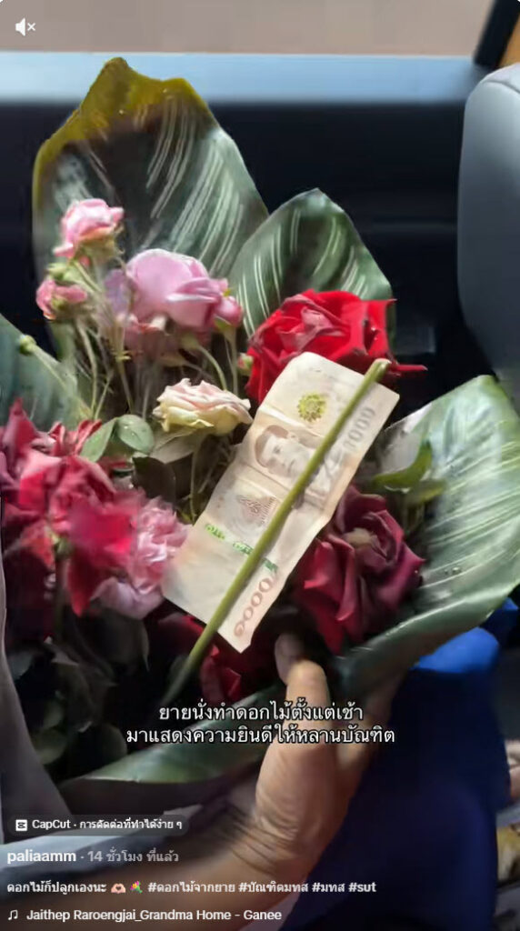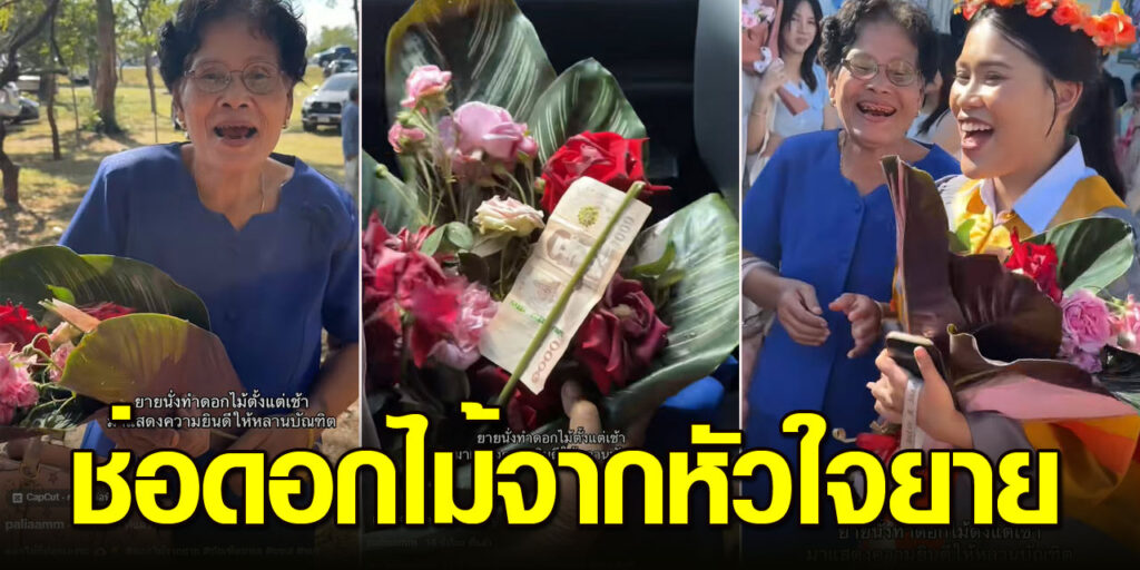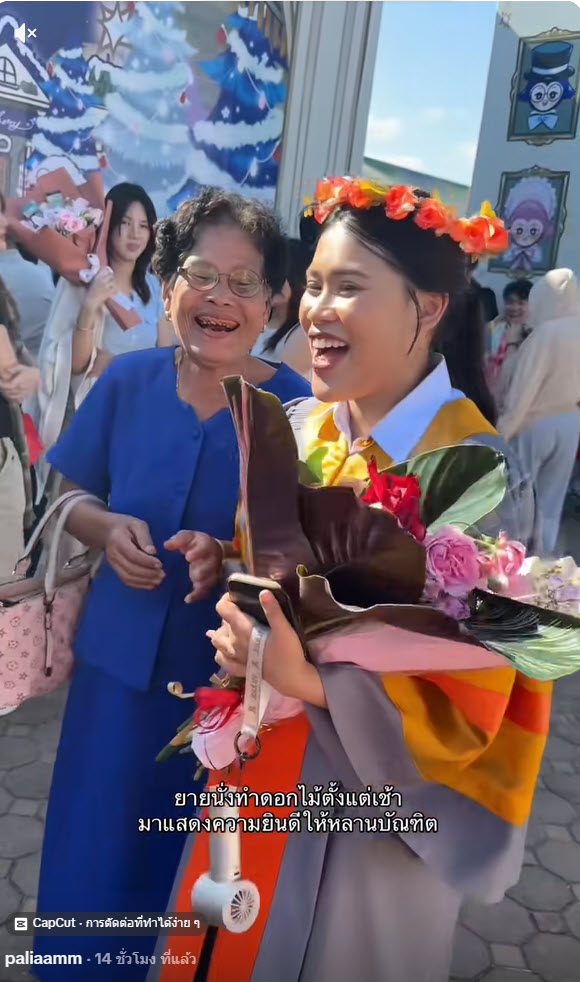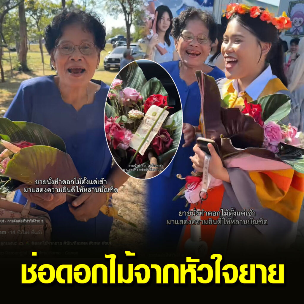 คลิปสั้นๆ แต่เต็มไปด้วยความหมายนี้ ทำให้หลายคนได้เห็นคุณค่าของคำว่า “ครอบครัว” อย่างชัดเจน เพราะช่อดอกไม้ที่คุณยายตั้งใจทำ ไม่ได้มีมูลค่าจากราคา แต่มีค่าจากหัวใจ ความรัก และความภูมิใจที่มีต่อหลานบัณฑิต เป็นอีกหนึ่งภาพความทรงจำที่เชื่อว่าจะอยู่ในใจทั้งผู้ให้และผู้รับไปอีกนานแสนนาน