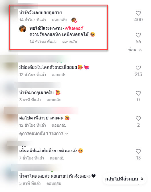 จากคลิปนี้ก็มีหลายคนเข้ามาแสดงความคิดเห็นกันอย่างมากมาย “ความรักออแกนิก เหมือนดอกไม้ “
