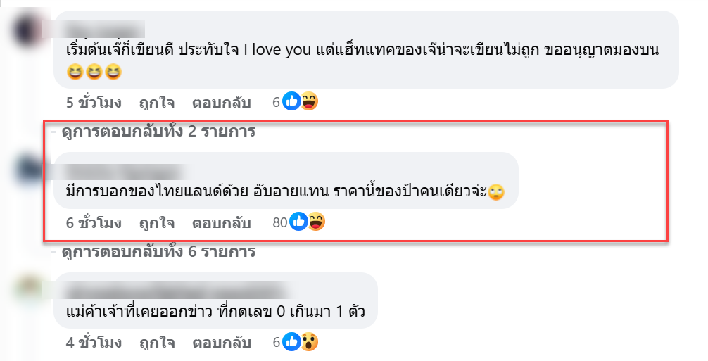 “มีการบอกของไทยแลนด์ด้วย อับอายแทน ราคานี้ของป้าคนเดียวจ่ะ”
