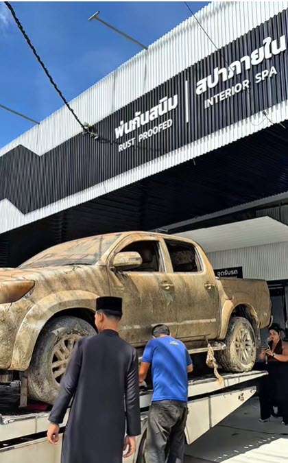 ซึ่งจากในคลิปนั้นได้เผยให้เห็นว่ารถกระบะโตโยต้า สี่ประตู ที่หายและจมน้ำอยู่ 3 ปี ซึ่งทางเจ้าของได้นำมาให้ทางร้านสปารถ ทำความสะอาด โดยแยกชิ้นส่วนออกมาทำความสะอาด และพ่นสีใหม่ ซึ่งไม่ได้เปลี่ยนของชิ้นใหม่เลยนอกจากไฟหน้าและไฟท้าย