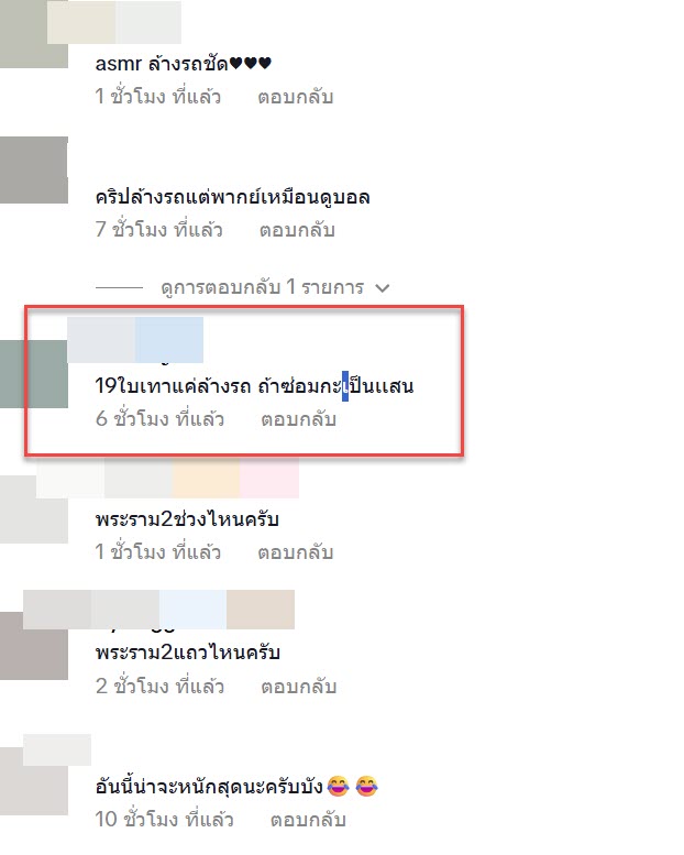 หลายคนเห็นคลิปแล้วต่างก็เข้ามาแสดงความคิดเห็นกันอย่างมากมาย”19ใบเทาแค่ล้างรถ ถ้าซ่อมกะเป็นเเสน”