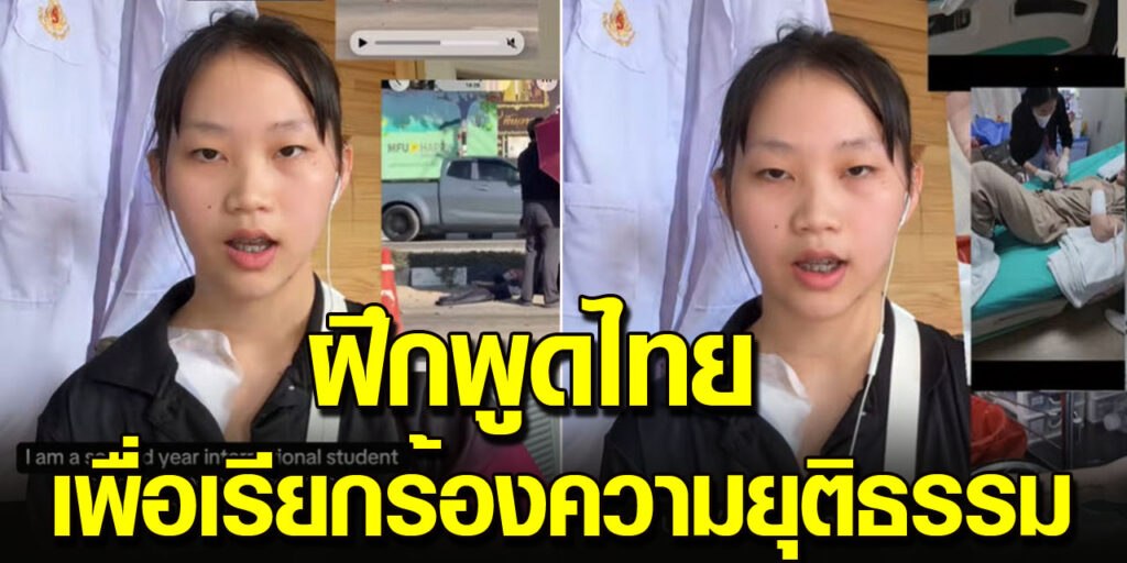 นักศึกษาต่างชาติ โดนกระบะผ่าไฟแดงชนคู่กรณีหนีหาย ฝึกพูดไทยเรียกร้องความเป็นธรรม