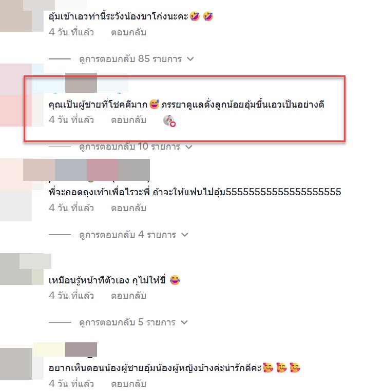โดยจากในคลิปนี้ก็มีหลายคนเข้ามาแสดงความคิดเห็นกันอย่างมากมาย เป็นอีกหนึ่งคลิปที่น่ารักมาก และเป็นผู้หญิงที่ดูแลผู้ชายได้ดีจริงๆ