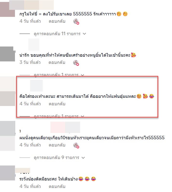 “คือใส่รองเท้าเตะนะ สามารถเดินมาได้ คืออยากให้แฟนอุ้มแหละ”