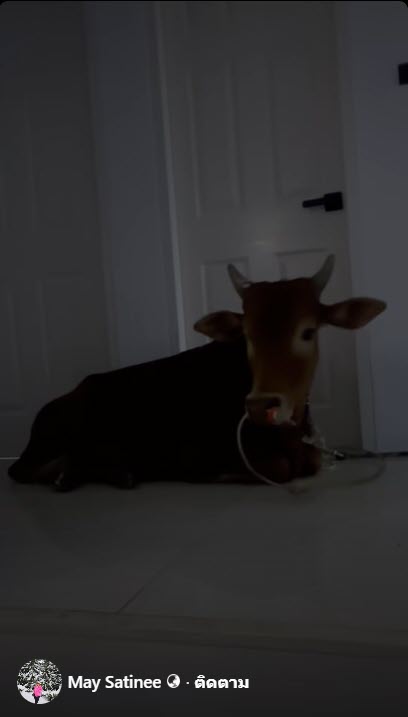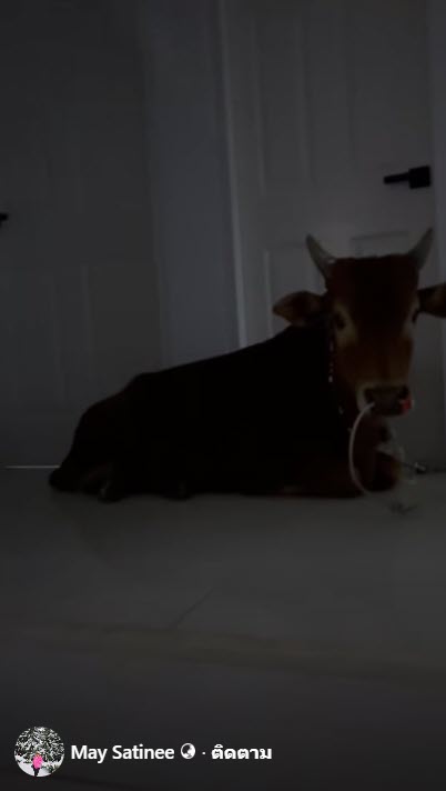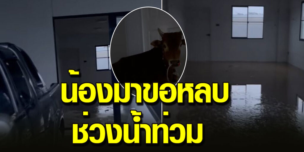 โดยจากในคลิปพร้อมเผยให้เห็นว่าเจ้าของบ้านได้กลับเข้าไปดูบ้านหลังจากน้ำลด ซึ่งพอเดินขึ้นไปชั้นสองของบ้านก็ต้องตกใจเพราะมีวัวนอนอยู่บนบ้าน ซึ่งน้องน่าจะหนีน้ำท่วมมาเหมือนกัน