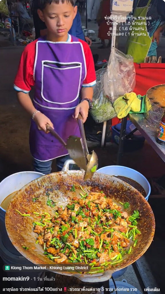 เป็นอีกหนึ่งคลิปที่ดูแล้วอยากจะขอชื่นชมในความเก่งของน้องจริงๆ สำหรับพ่อครัวตัวน้อย ที่มาขายของช่วยพ่อแม่ และยังลงมือทำอาหารด้วยตัวเอง ซึ่งบัญชีผู้ใช้ TikTok ที่ใช้ชื่อ @momakin9 ได้ออกมาโพสต์คลิปพร้อมเผยว่า “อายุน้อย ช่วยพ่อแม่ได้ 100 อย่าง ช่วยมาตั้งแต่อายุ 3 ขวบ เก่งก่อนรวยก่อน”