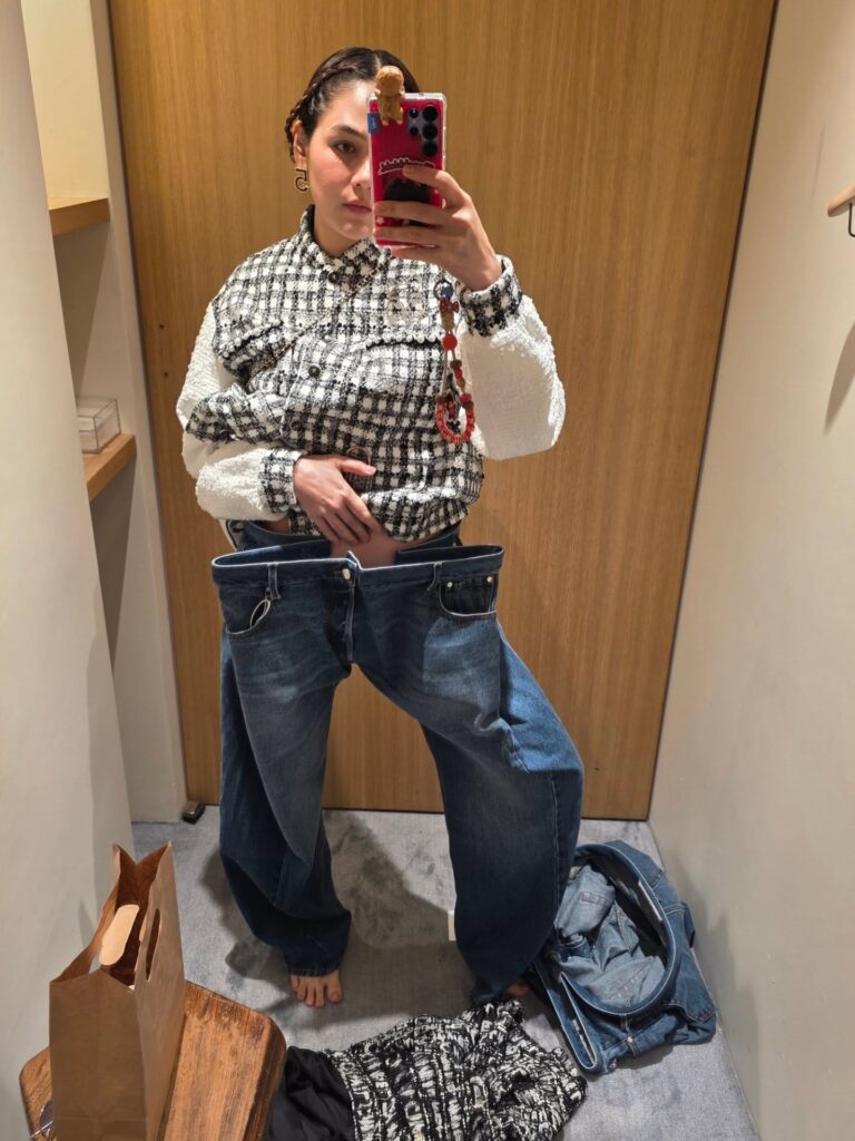 แต่ที่ต้องสะดุดตาไปตามๆกันก็คือภาพของแม่ชมที่ใส่กางเกงยีนส์ดีไซน์สุดแปลกตา ที่ไม่เหมือนใคร จนทำให้ลุคนี้ของแม่ชมกลายเป็นที่พูดถึงกันอย่างมาก
