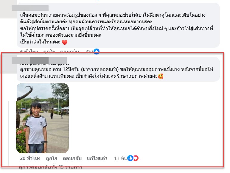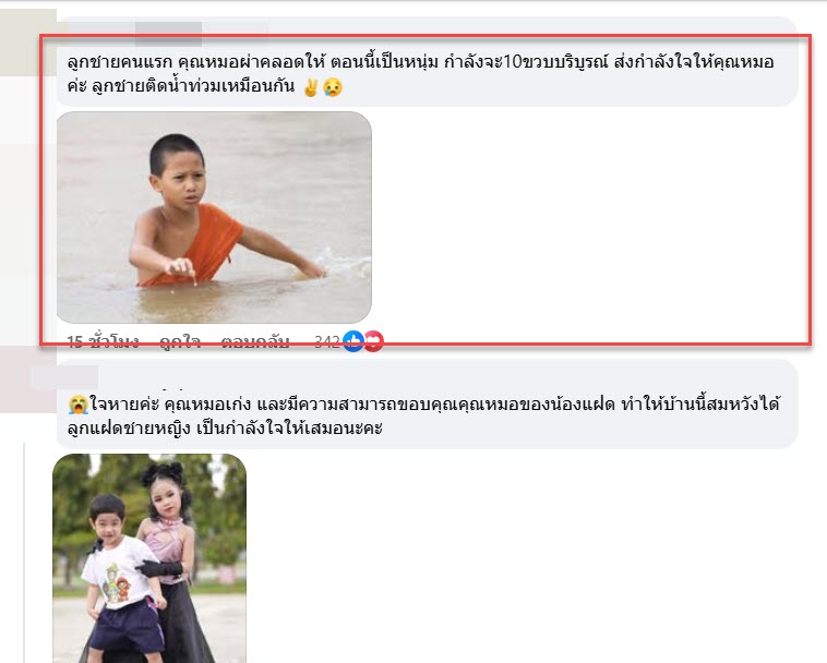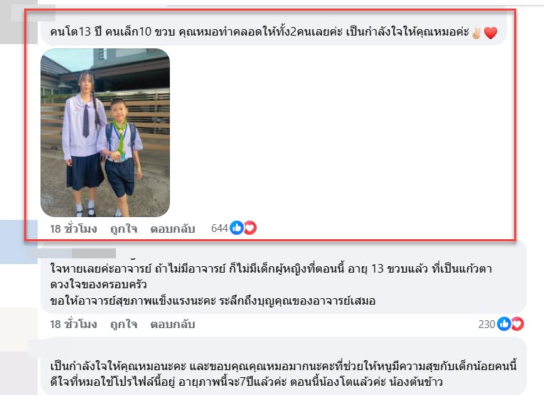 “คนโต13 ปี คนเล็ก10 ขวบ คุณหมอทำคลอดให้ทั้ง2คนเลยค่ะ เป็นกำลังใจให้คุณหมอค่ะ”