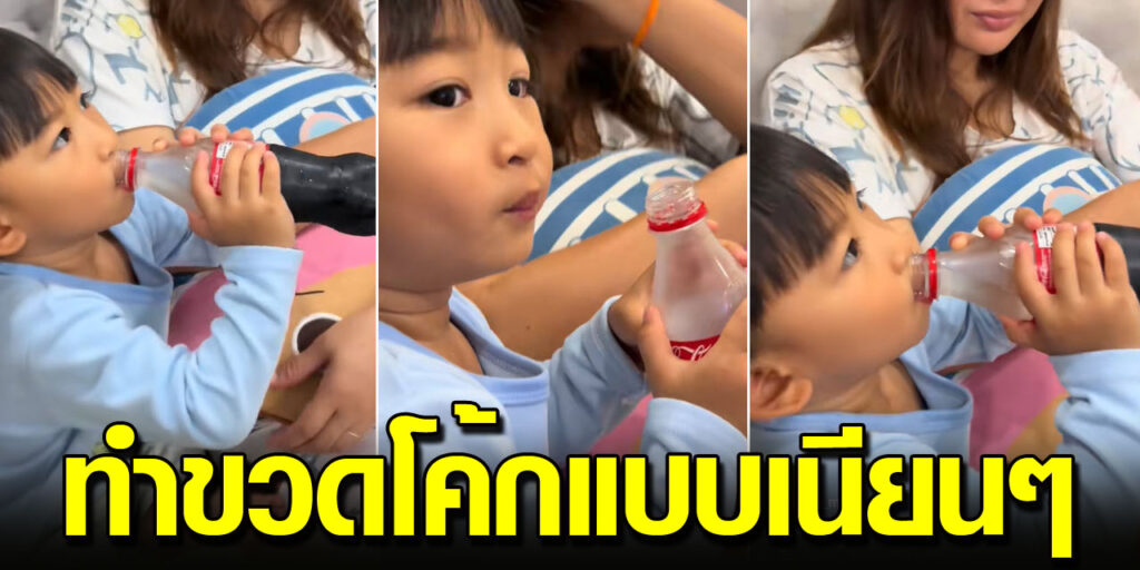 โดยจากในคลิปนั้นเผยให้เห็นว่าลูกชายกำลังยกขวดน้ำโค้กดื่ม แต่ในขวดนั้นไม่มีน้ำโค้ก แต่เป็นน้ำเปล่า ที่แม่เอาเทปสีดำพันไว้รอบๆขวดเพื่อหลอกลูกแบบเนียนๆ