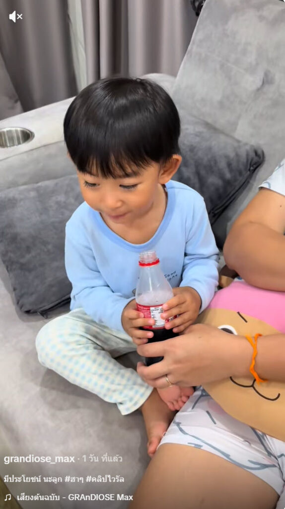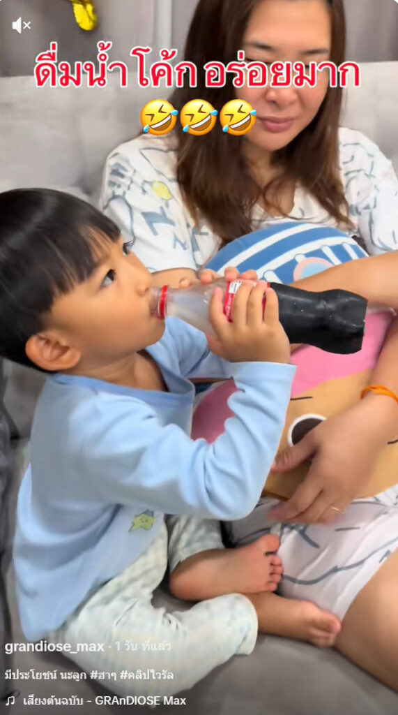 โดยล่าสุดบัญชีผู้ใช้ TikTok ที่ใช้ชื่อ @grandiose_max ได้ออกมาโพสต์คลิปพร้อมเผยว่า “ดื่มน้ำโค้ก อร่อยมาก มีประโยชน์ นะลูก “