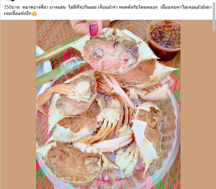 “350บาท ตลาดอ่างศิลา บางแสน ไม่มีที่จะกินเลย เจ็บแล้วจำ หมดตังกับโดนหลอก เนื้อแทบหาไม่เจอแล้วยังมาเจอเนื้อแห้งอีก”