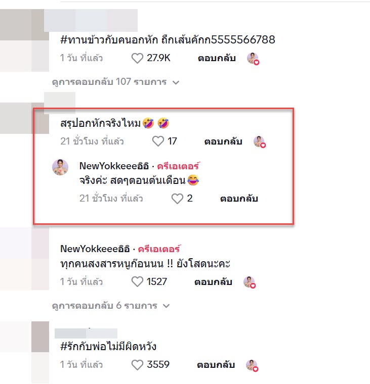 จากคลิปนี้ก็มีหลายคนเข้ามาแสดงความคิดเห็นกันอย่างมากมาย “สรุปอกหักจริงไหม” “จริงค่ะ สดๆตอนต้นเดือน”