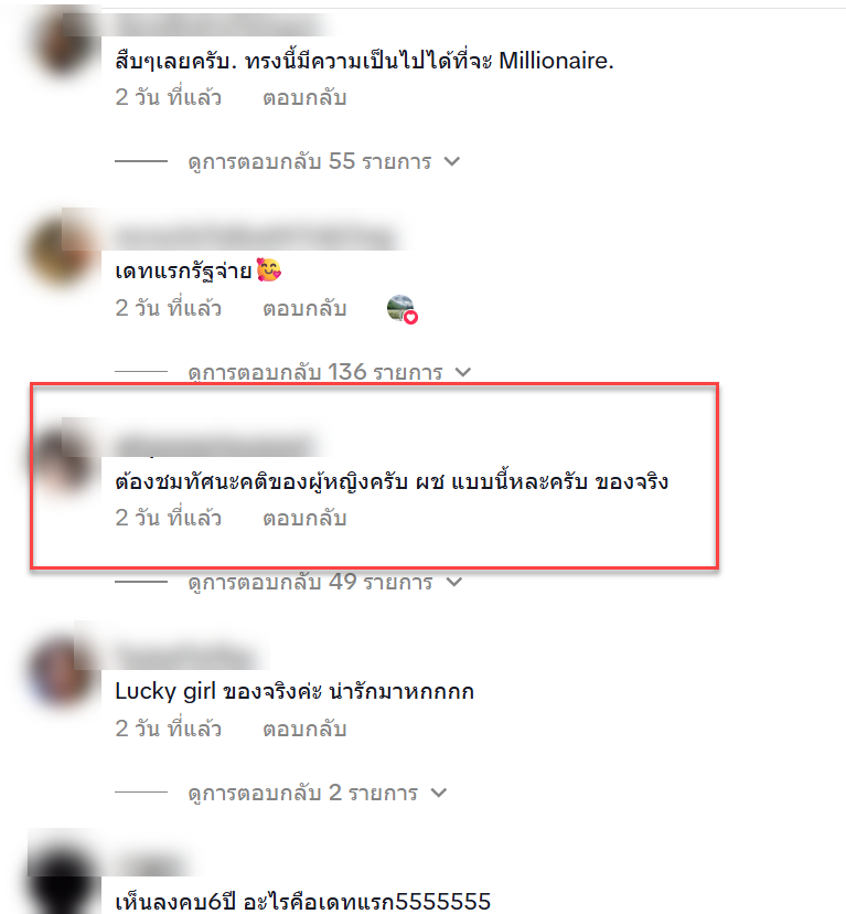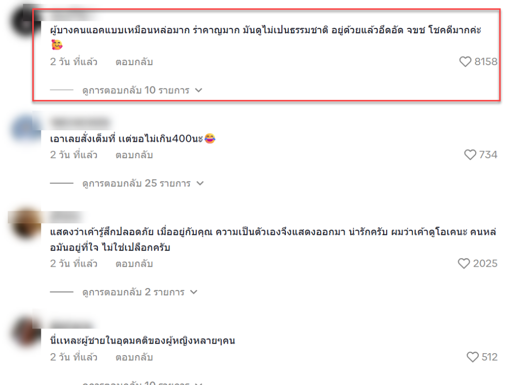 จากคลิปนี้มีหลายคนเข้ามาแสดงความคิดเห็นกันอย่างมากมาย “ต้องชมทัศนคติของผู้หญิงครับ ผช แบบนี้แหละครับ ของจริง”