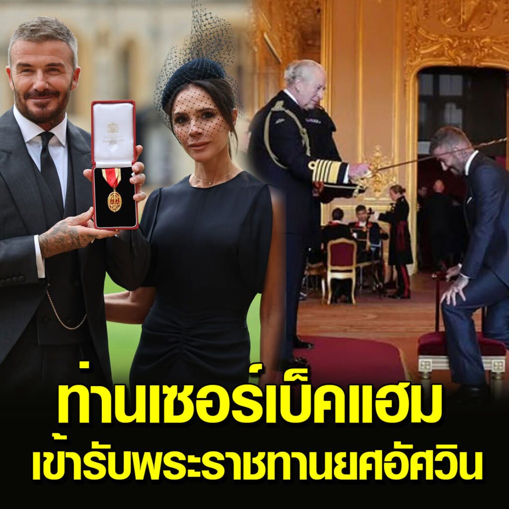 เดวิด เบ็คแฮม หนึ่งในนักฟุตบอลที่โด่งดังที่สุดของสหราชอาณาจักร ได้รับพระราชทาน บรรดาศักดิ์ยศอัศวิน (Knighted) จากสมเด็จพระเจ้าชาร์ลส์ ณ ปราสาทวินด์เซอร์ เมื่อวันอังคาร (4 พฤศจิกายน) เพื่อเป็นการยกย่องการอุทิศตนตลอดหลายทศวรรษของเขาในด้านกีฬาและงานการกุศล