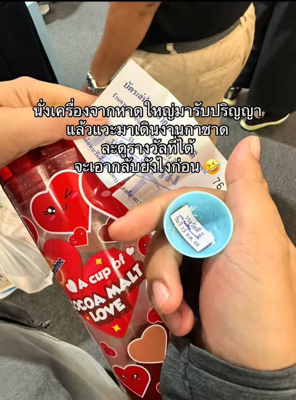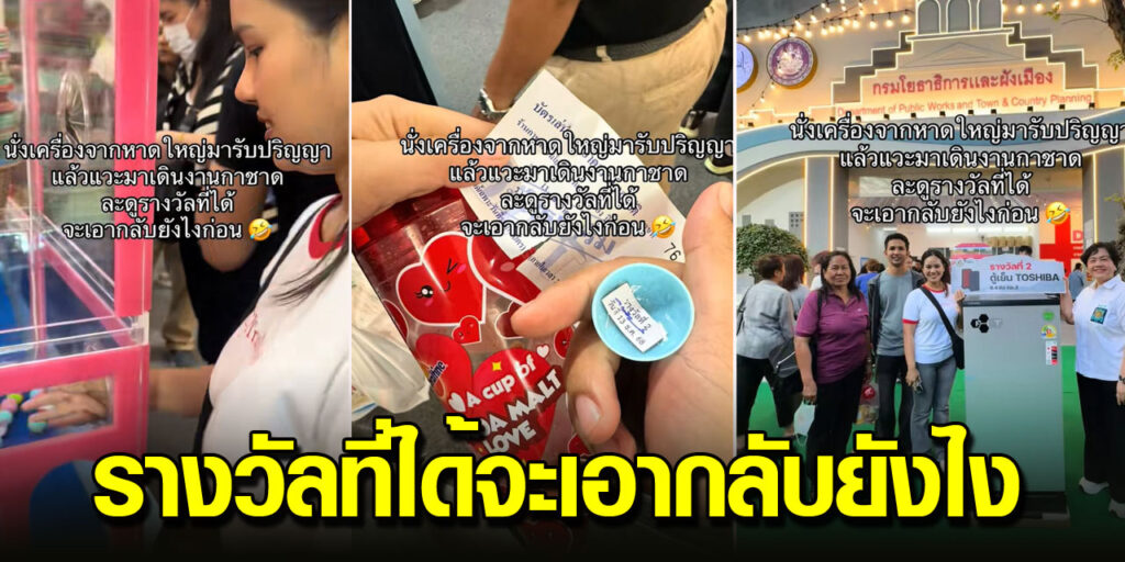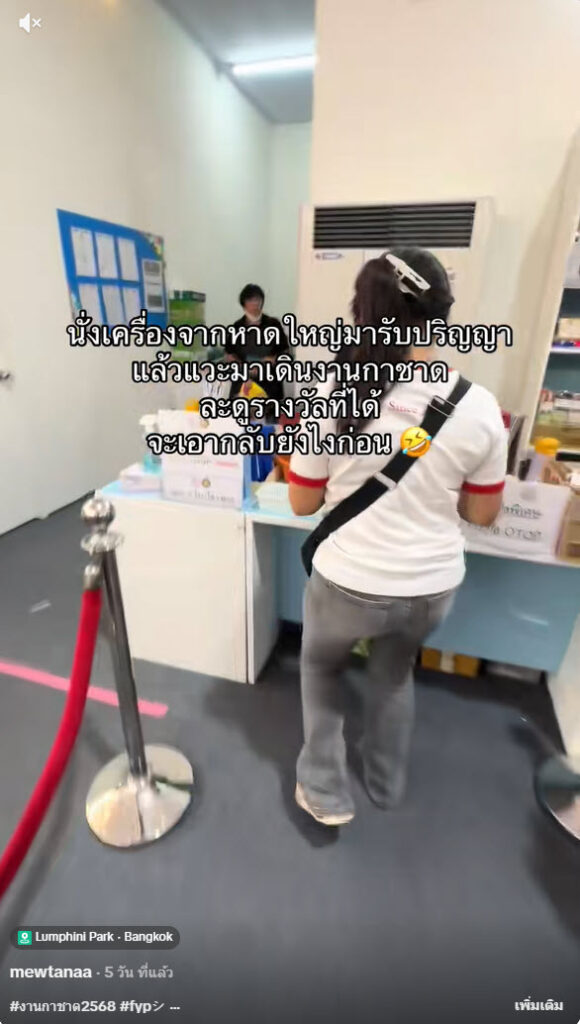 เป็นอีกหนึ่งคลิปที่ดูแล้วต้องบอกเลยว่าคนที่มีดวงก็มักจะโชคดีจริงๆ เมื่อบัญชีผู้ใช้ TikTok ที่ใช้ชื่อ @mewtanaa ได้ออกมาโพสต์คลิปหลังจากหลังจากที่ไปเดินงานกาชาด และได้ไปจับสลากโดยจากในคลิปนั้นได้เผยว่า “นั่งเครื่องจากหาดใหญ่มารับปริญญแล้วแวะมาเดินงานกาชาด ละดูรางวัลที่ได้ จเอากลับยังไงก่อน”