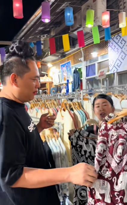กลายเป็นอีกหนึ่งประเด็นดราม่าที่ถูกพูดถึงกันอย่างมาก สำหรับพี่จองและคัลแลนที่ไปเที่ยวตลาดน้ำแห่งหนึ่งแล้วเจอแม่ค้ายัดเหยียดขายเสื้อและกางเกงช้างให้ โดยจ่ายไปเกือบ 1,000 บาท ทำให้หลายคนมองว่าขายแพงเกินความเป็นจริง ล่าสุดพี่จูดี้ เพื่อนของพี่จองและคัลแลนไปเที่ยวถนนคนเดินในจังหวัดน่านแล้วเจอแม่ค้าขายกางเกงช้าง