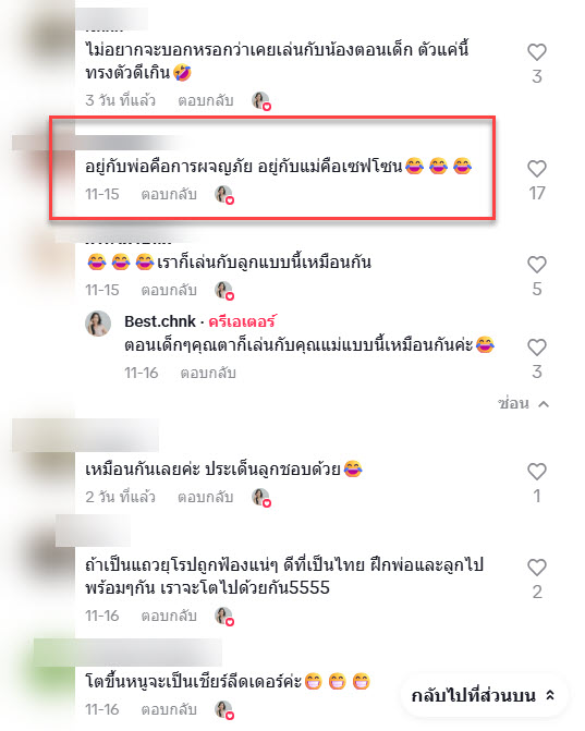 อย่างไรก็ตาม คลิปดังกล่าวสร้างทั้งรอยยิ้มและเสียงหัวเราะให้กับชาวโซเชียลเป็นจำนวนมาก หลายคนต่างเข้ามาแซวความใจกล้าของคุณพ่อ พร้อมเข้าใจหัวอกคนเป็นแม่ที่เห็นแล้วใจแทบสั่น