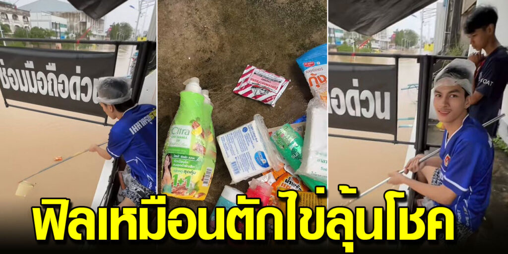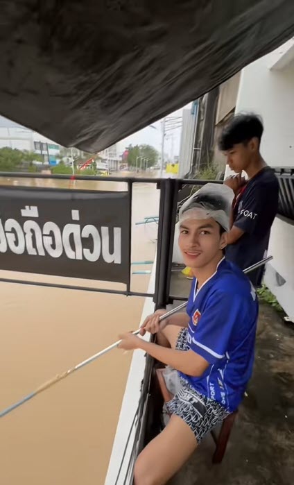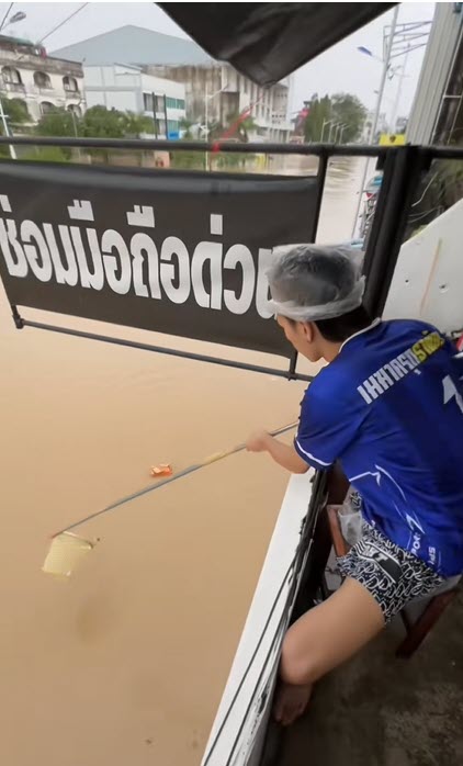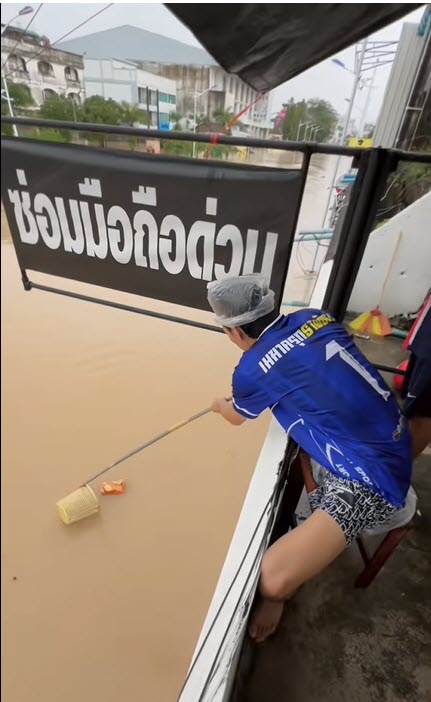 “ดูมาหลายคลิปมาเจอคลิบนี้คือมีสติหาของกินได้ตามน้ำที่ไหลมาคุณมีสติได้ดีมาก เดียวน้ำก็ลดแล้วค่ะ”