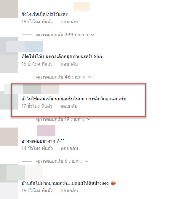 จากคลิปนี้ก็มีหลายคนเข้ามาแสดงความคิดเห็นกันอย่างมากมาย “ถ้าไม่ใช่คอนเท้น ผมยอมรับในมุมการพลิกวิกฤตเลยครับ”