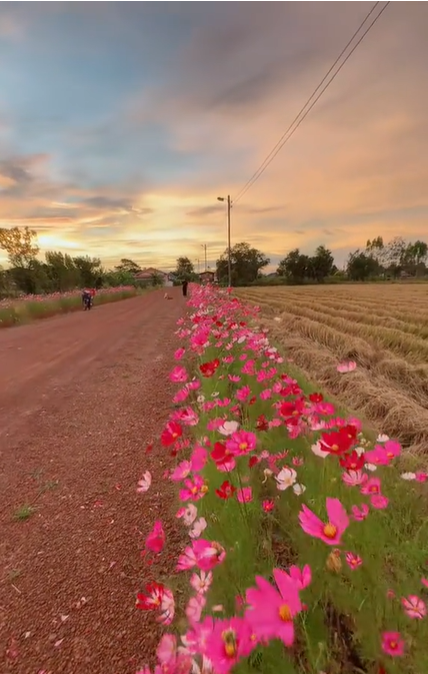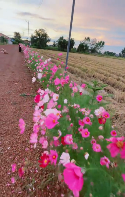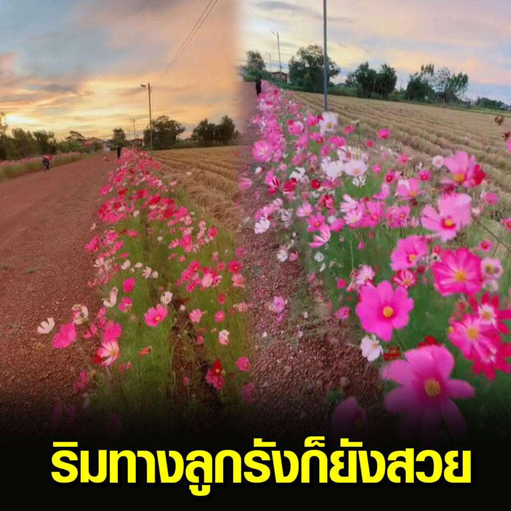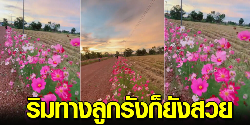สวยมาก ปลูกดอกไม้ริมทางลูกรังเปลี่ยนโหมดวิวทุ่งนาให้ ได้บรรยากาศ