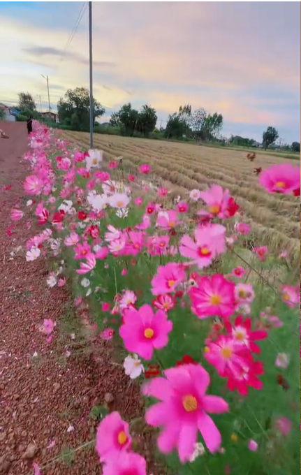 ทั้งนี้มีหลายคนเห็นแล้วอยากจะปลูกดอกไม้เลย ซึ่งที่เห็นในคลิปนั้นคือดอกคอมอส หรือที่เรียกอีกชื่อว่า “ดอกดาวกระจาย” เป็นไม้ดอกล้มลุก มีถิ่นกำเนิดในอเมริกากลาง เป็นไม้ดอกที่ปลูกและดูแลรักษาง่าย มีหลากหลายสี เช่น เหลือง, ชมพู, ขาว, และแดง นอกจากนี้ ดอกคอสมอสยังมีความหมายที่ดีในภาษาดอกไม้คือ ความหวัง, ความสดใส และการเริ่มต้นใหม่