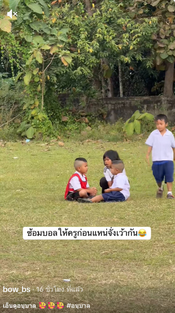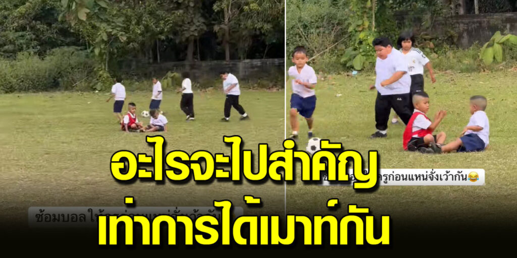 โดยจากในคลิปนั้นได้เผยให้เห็นว่าน้องอนุบาล ที่คุณครูได้ตะโกนบอกว่าเตะบอลก่อนลูกค่อยคุยกัน แต่เด็กๆก็ไม่สนใจนั่งเมาท์กันฉ่ำมาก