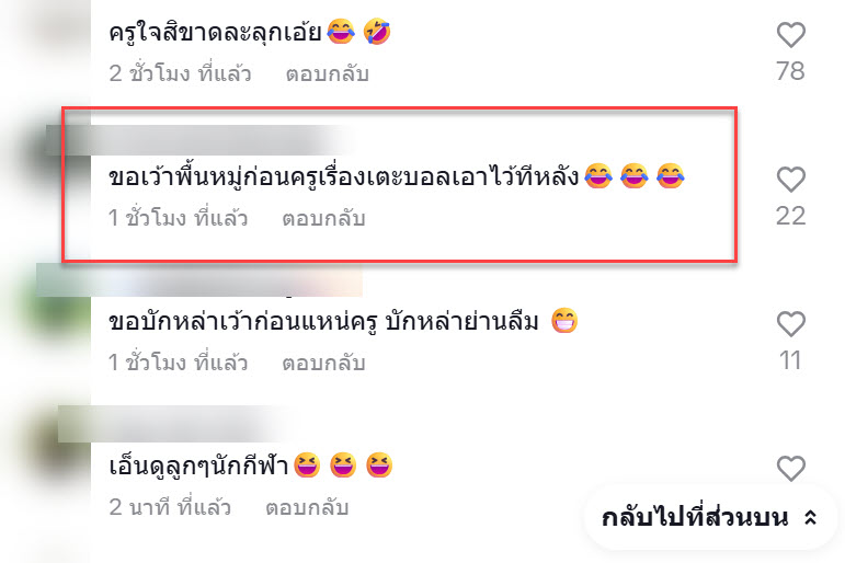 โดยหลายคนเห็นแล้วก็ได้มีหลายคนเข้ามาแสดงความคิดเห็น และยังบอกด้วยว่าน้องคงมีเรื่องสำคัญที่ต้องเมาท์กับเพื่อน เลยไม่สนใจเล่นฟุตบอลแล้ว