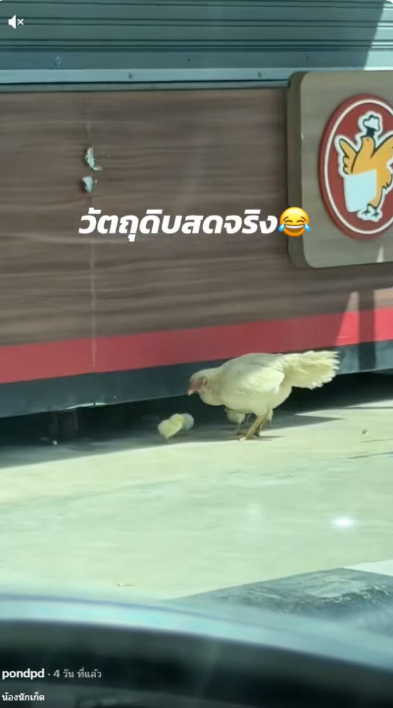 ซึ่งจากในคลปนั้นก็เผยให้เห็นว่าแม่ไก่ที่พาลูกๆมาเดินหากินแถวร้านไก่ทอ ด ทำให้เห็นแล้วก็อดคิดไม่ได้ หรือแม่ไก่พาลูกๆมาสมัครงาน