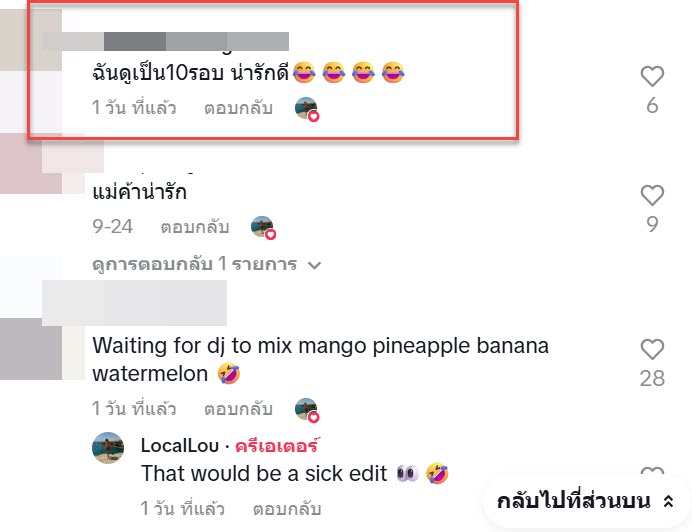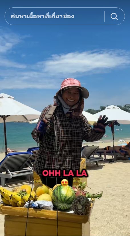 เป็นอีกหนึ่งคลิปที่ดูแล้วน่ารักมากๆ เมื่อบัญชีผู้ใช้ TikTok ที่ใช้ชื่อ @local_lou ได้ออกมาโพสต์คลิปของแม่ค้าขายผลไม้ริมชายหาด ที่นักท่องเที่ยวต่างชาติเห็นแล้วประทับใจ เพราะแม่ค้าร้องเพลงและขายไปด้วย