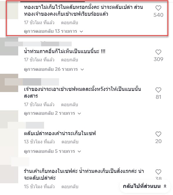 จากคลิปนี้ได้มีหลายคนเข้ามาแสดงความคิดเห็นกันอย่างมากมาย”ทองเขาไม่เก็บไว้ในตลับหรอกมั้งคะ น่าจะตลับเปล่า ส่วนทองเจ้าของคงเก็บเข้าเซฟเรียบร้อยแล้ว”