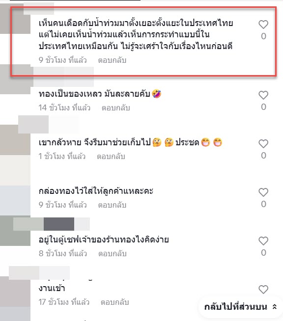 “เห็นคนเดือดกับน้ำท่วมมาตั้งเยอะตั้งแยะในประเทศไทย แต่ไม่เคยเห็นน้ำท่วมแล้วเห็นการกระทำแบบนี้ในประเทศไทยเหมือนกัน ไม่รู้จะเศร้าใจกับเรื่องไหนก่อนดี”