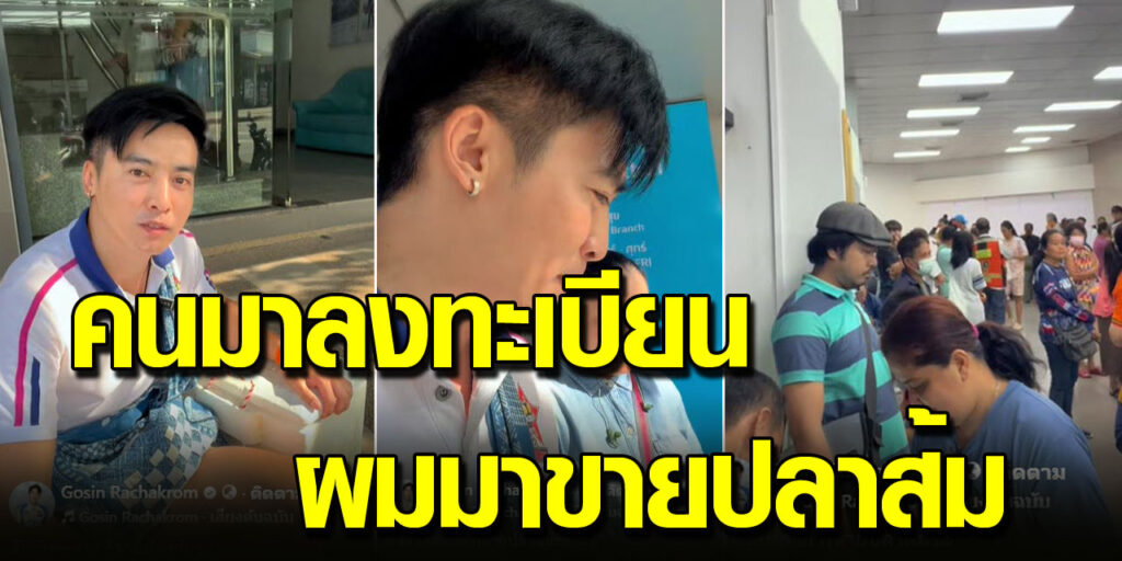 โก โกสินทร์ เอาปลาส้มไปขายหน้าธนาคาร เจอชาวบ้านมาลงทะเบียนกันแน่น