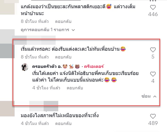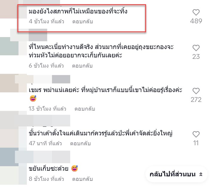 ซึ่งจากในคลิปนี้ก็มีหลายคนเข้ามาแสดงความคิดเห็นกันอย่างมากมาย ทั้งบอกว่าของตกแต่งบ้านมันไม่เหมือนของที่จะทิ้ง แต่งงกับพี่คนเก็บขยะว่าทำไมต้องเก็บทิ้งด้วย