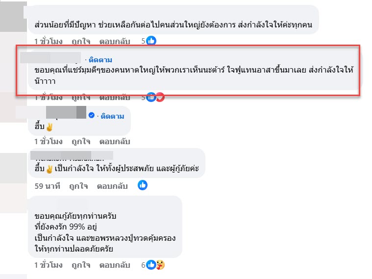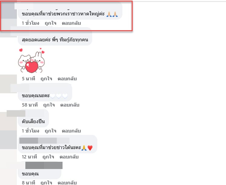 ซึ่งจากในโพสต์นี้ก็มีหลายคนเข้ามาแสดงความคิดเห็น และจาประเด็นดราม่าเรื่องชาวบ้านที่ตะโกนด่า และทำร้ายกู้ภัยอาจจะเป็นแค่ส่วนน้อย แต่จริงๆยังมีชาวบ้านที่น่ารักมากๆอยู่